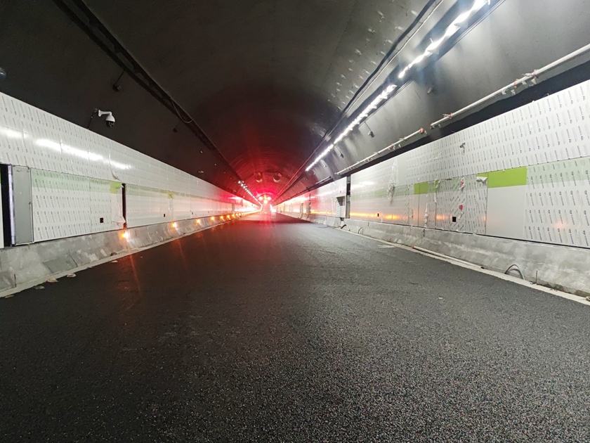 環(huán)北天目工程隧道瀝青路面攤鋪圓滿完成