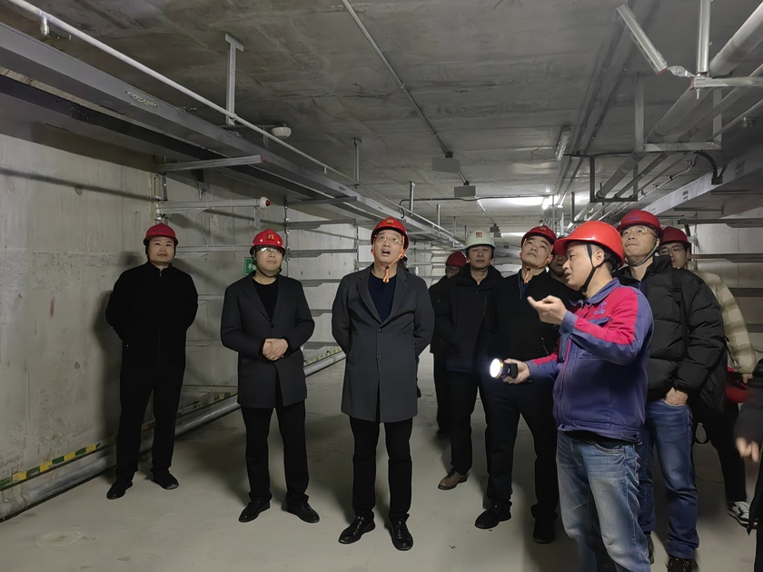 在金橋北路管廊現(xiàn)場,蔣征波總經(jīng)理、方曉副總經(jīng)理實地踏勘了管廊控制中心、水力艙及電力艙,了解廊體內(nèi)部監(jiān)測方案及項目后期運營收益情況,并針對提升管理水平等方面工作提出新要求。